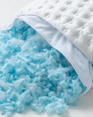 PREMIUM SHREDDED MEMORY FOAM PILLOW- Memory foam pillow is infused with gel granules, 75% crushed memory foam + 25% polyester fibres, the cooling gel memory foam helps to absorb heat and breathe; the polyester fibres are added to prevent it from clumping or becoming too compact. Maintains a comfortable and cool sleeping environment for you.