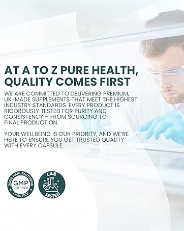 A to Z Pure Health is a family‑run, UK‑based brand committed to delivering premium vitamins and supplements across the nation and Europe. Drawing on years of healthcare expertise, our products are meticulously sourced, tested and manufactured in the UK to GMP standards. We champion transparency, clear labelling so you can trust us to support your happy, healthy lifestyle.